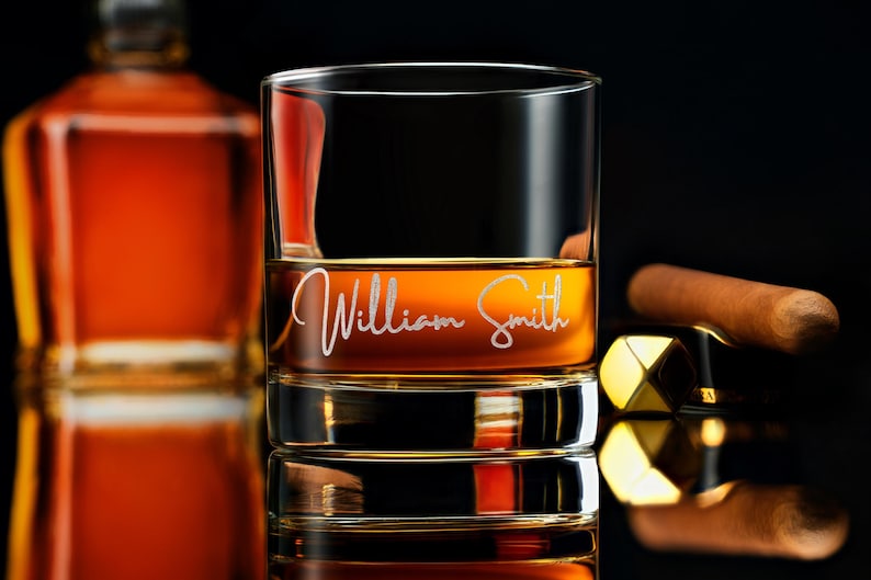 Custom Whiskey Glass with premium quality side and bottom engraving for any special occasion, Groomsmen Gift, Comes with free Gift Box.